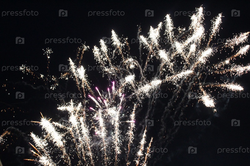 Фейерверки белые на темно-черном фоне. Праздничная атмосфера Рождество Новый год День независимости