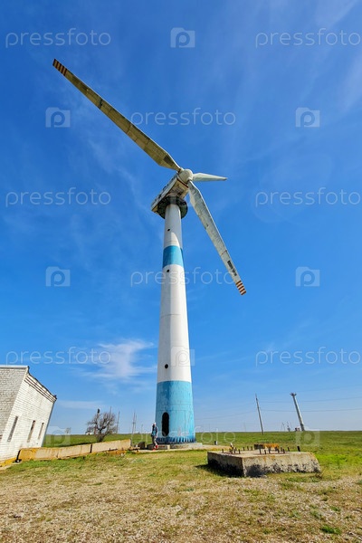 Старая ветряная мельница в степи