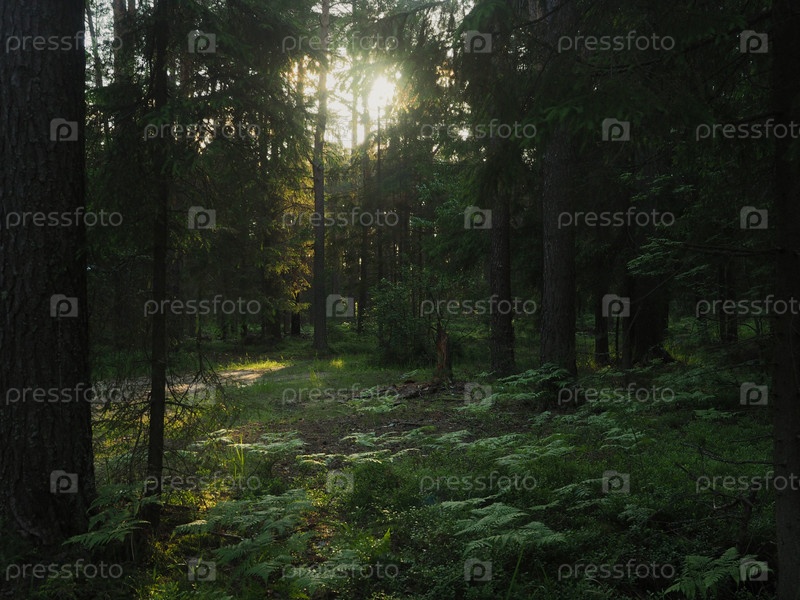 Закат в летнем лесу