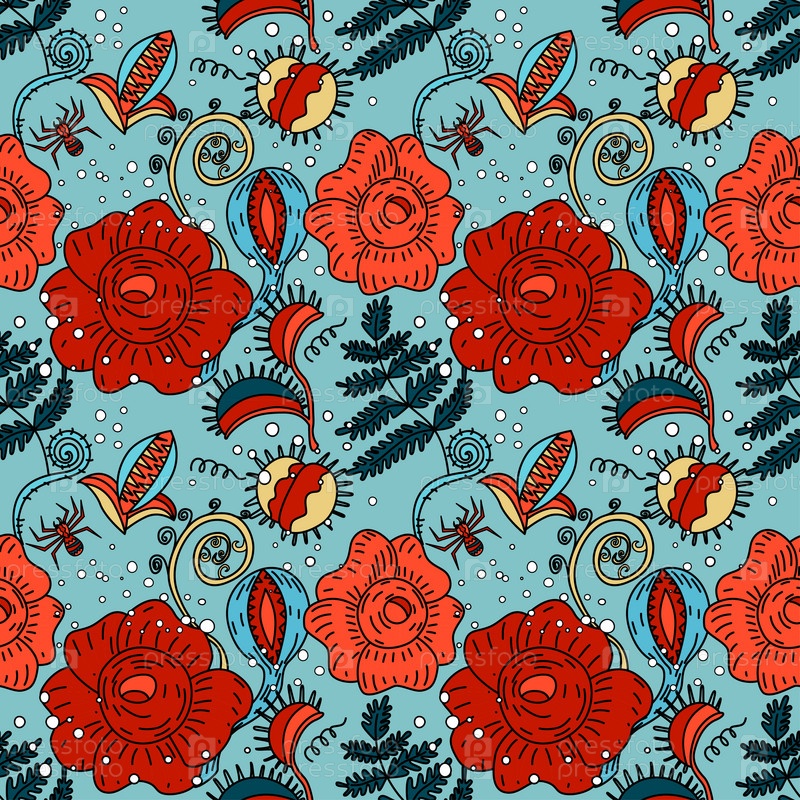 Хэллоуин цветочный вектор бесшовный узор в стиле каракулей