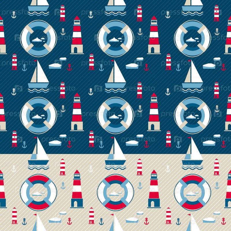 Векторный бесшовный узор с яхтой и спасательным кругом