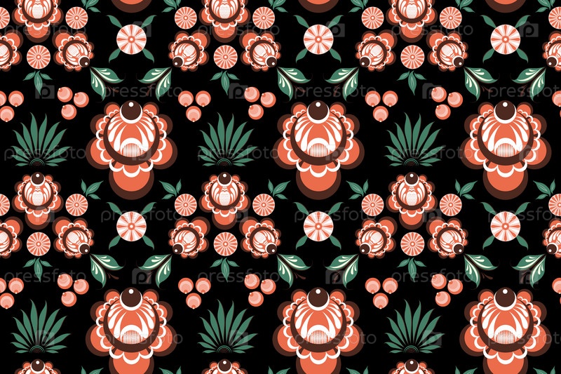 Русский народный цветочный темный бесшовный узор