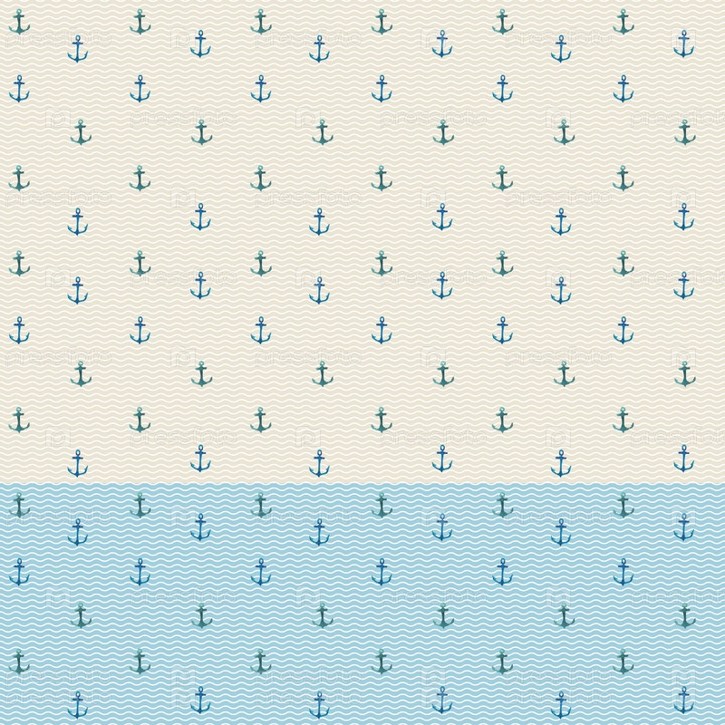 Вектор акварель бесшовный фон. Синие якоря и волны