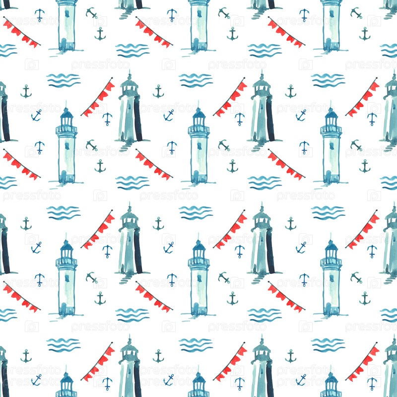 Векторный акварельный бесшовный рисунок моря с маяком