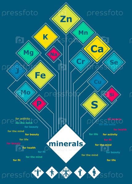 Вертикальный плакат с минералами для человека в плоском стиле, портретная ориентация