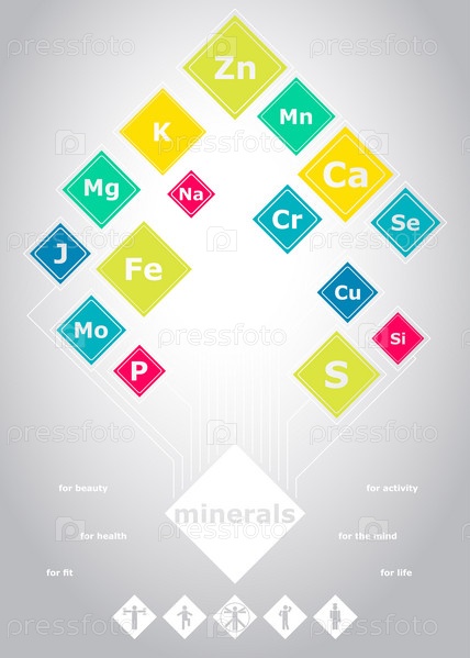 Плакат о минералах для человека в светлом стиле, портретная ориентация