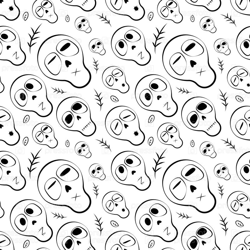 Вектор бесшовные черно-белые черепа с травами