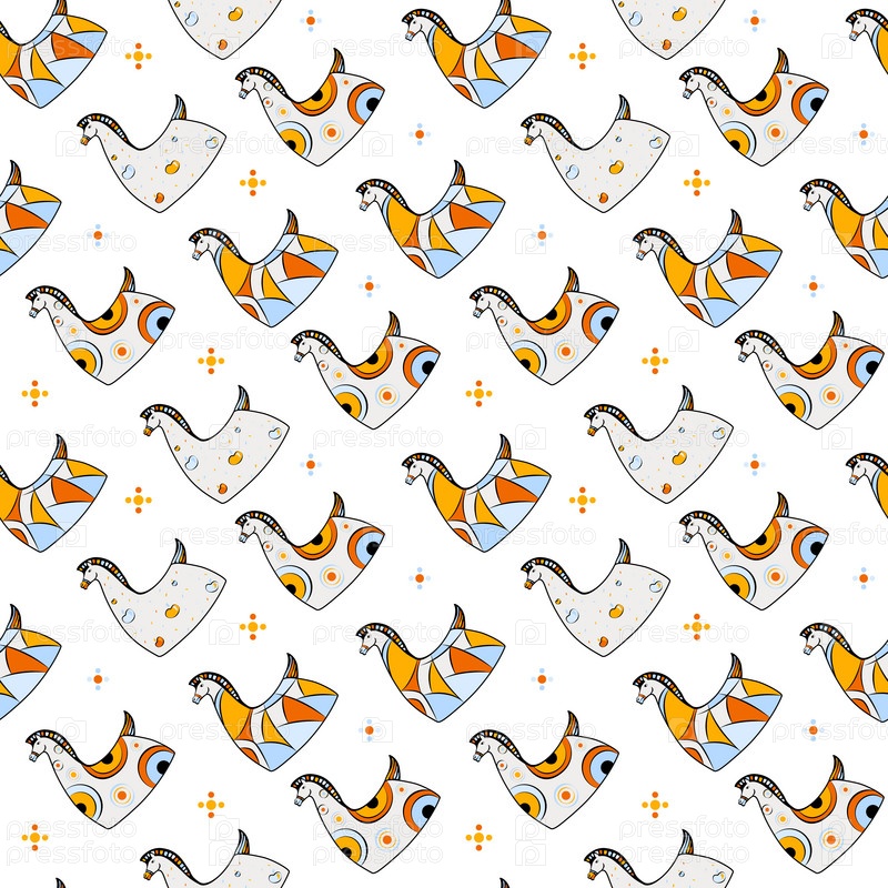 Векторный бесшовный рисунок сине-желтой миниатюрной лошади