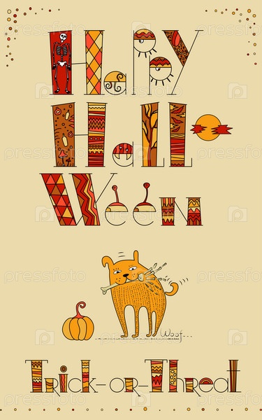 Векторный рисунок для открытки на Хэллоуин. Уловка или угроза