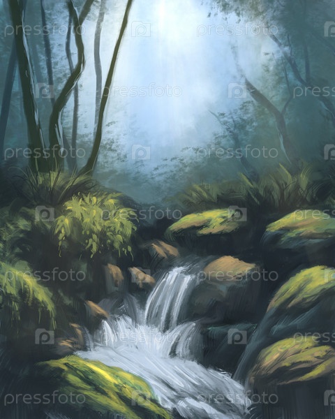 Маленький водопад в лесу