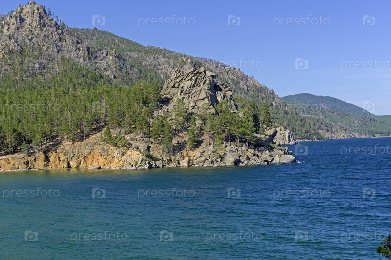 Мыс Дед. Вид с Большой Байкальской тропы. Озеро Байкал. Иркутская область, Россия. Август