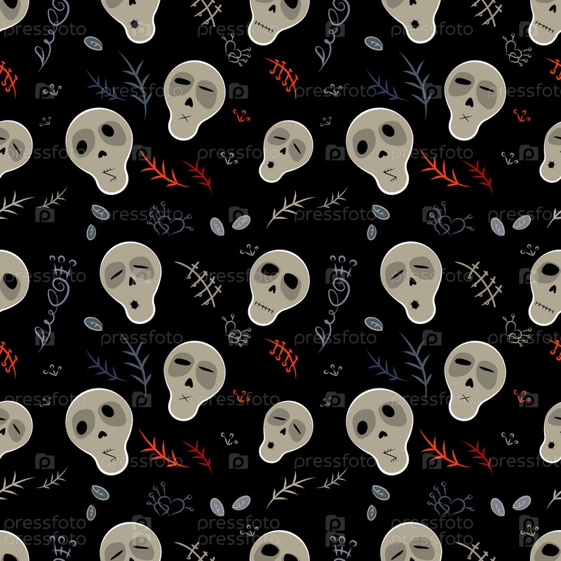 Векторные бесшовные черепа на черном