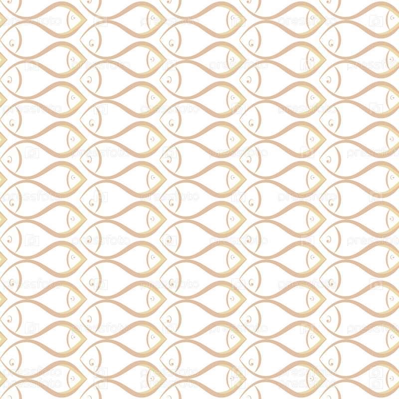 Векторный бесшовный орнамент с бежевыми и белыми рыбами