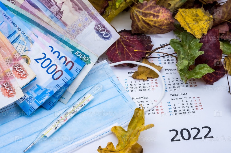 Осенние листья и термометр. Сезонная заболеваемость населения в 2022 году. Медицинская маска и термометр