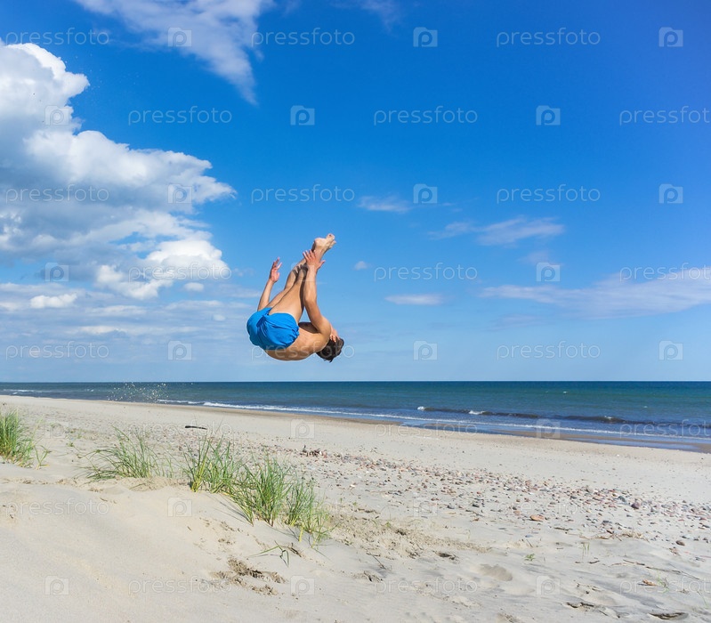 Утренняя зарядка на пляже. Юный спортсмен на пляже. Гимнастка на берегу моря