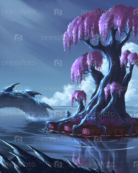 Фиолетовое дерево темной ночью