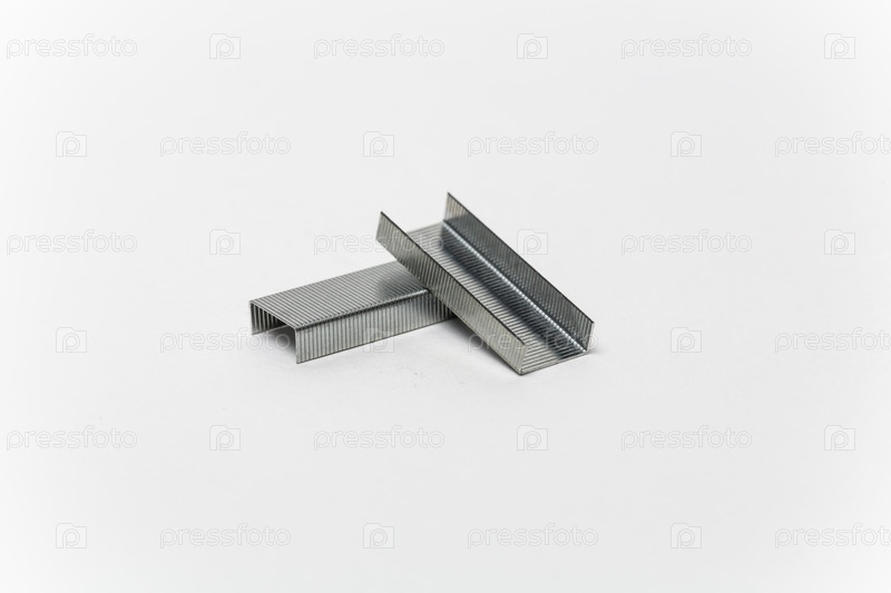 Две скрепки для степлера на белом