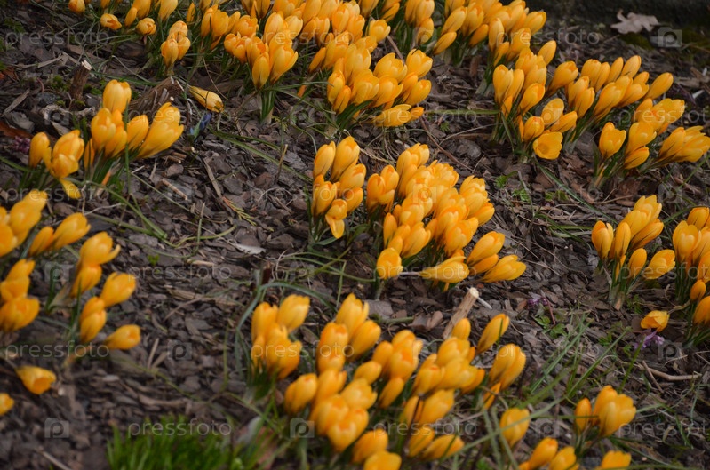 Многоцветный крокус шафрана (лат. Crocus) желтый весной