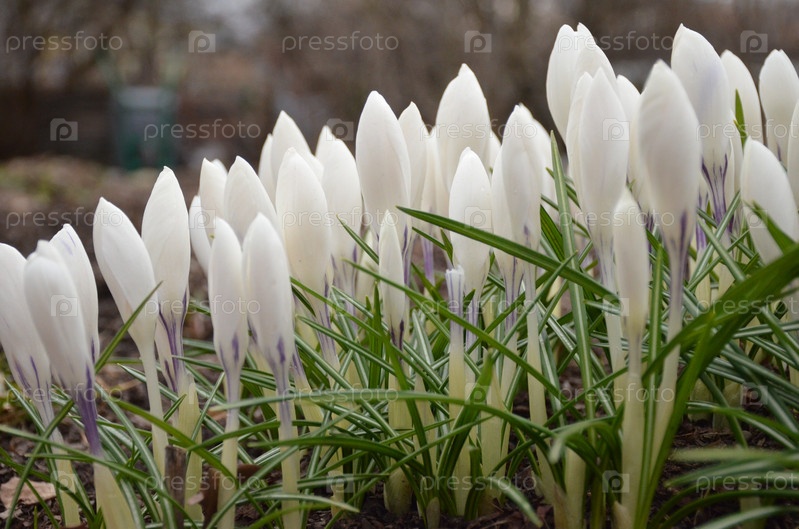 Многоцветные крокусы шафрана (лат. Crocus) белые весной