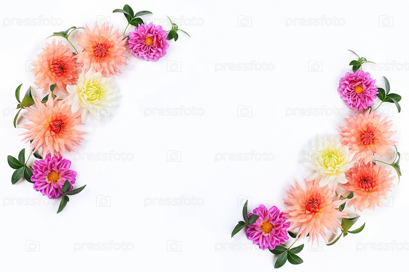 Красивые цветы георгина и бархатцев на светлом фоне, абстрактная цветочная композиция, весенний или осенний фон с местом для текста, минимальная концепция праздника, натюрморт, поздравительная открытка