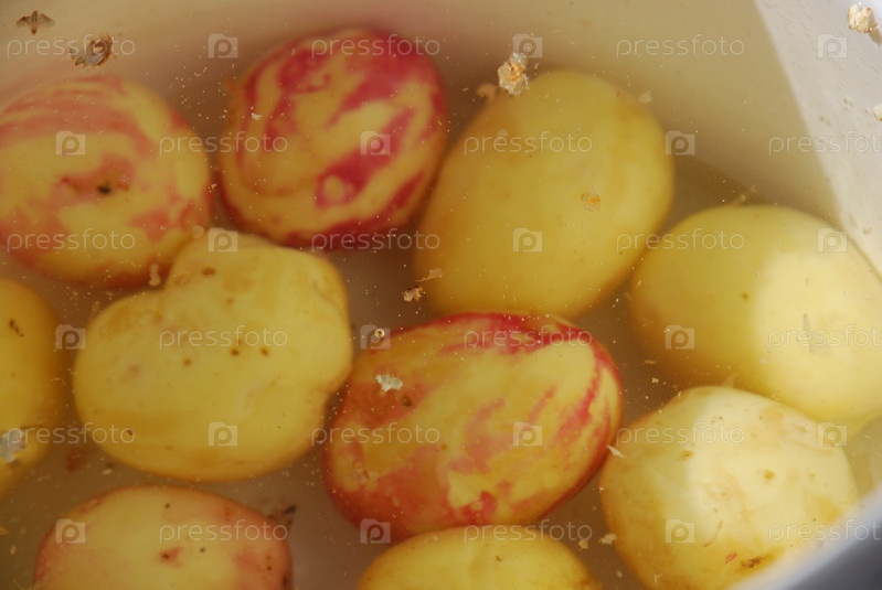 Молодой картофель в белом пластиковом ведре