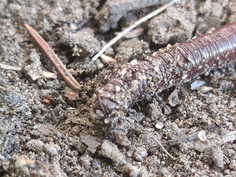 Дождевой червь ползет по сухой земле