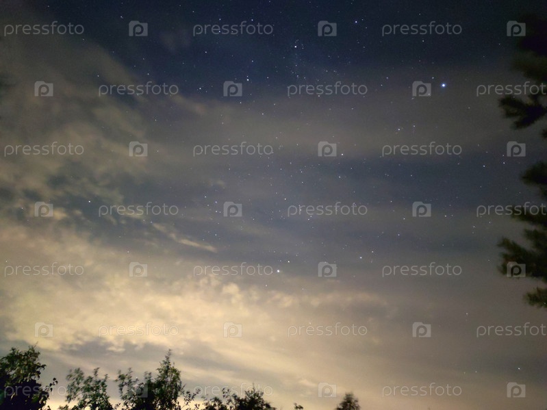 Голубо-розовое звездное небо с облаками