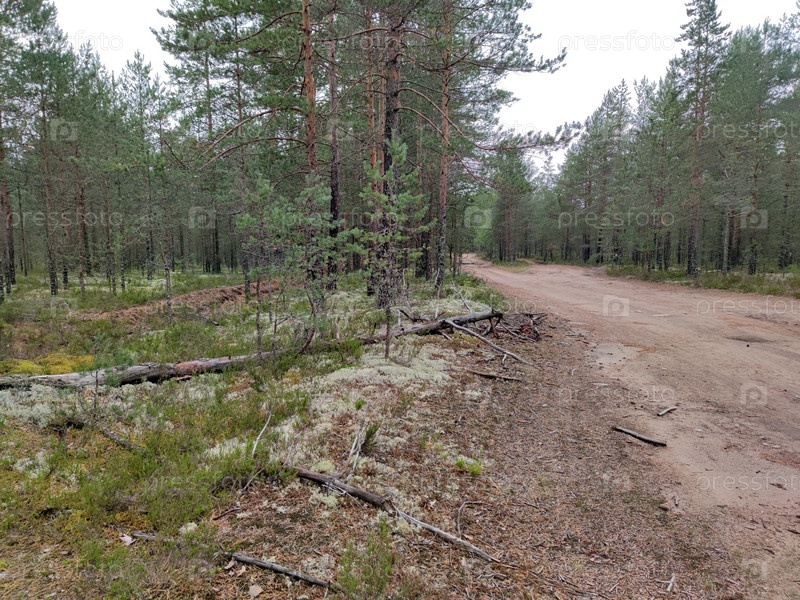 Песчаная дорога посреди хвойного леса