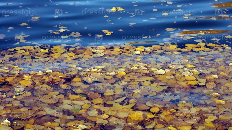 Желтые листья березы на воде