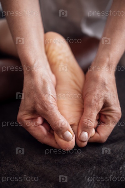 Крупным планом женская ступня получает нежный массаж