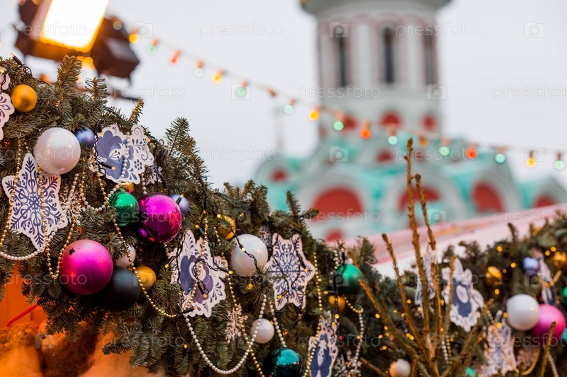 Рождественское украшение Красной площади. Красивые праздничные украшения в городе. Рождественские украшения улиц. Москва, Красная площадь, декабрь 2023 г