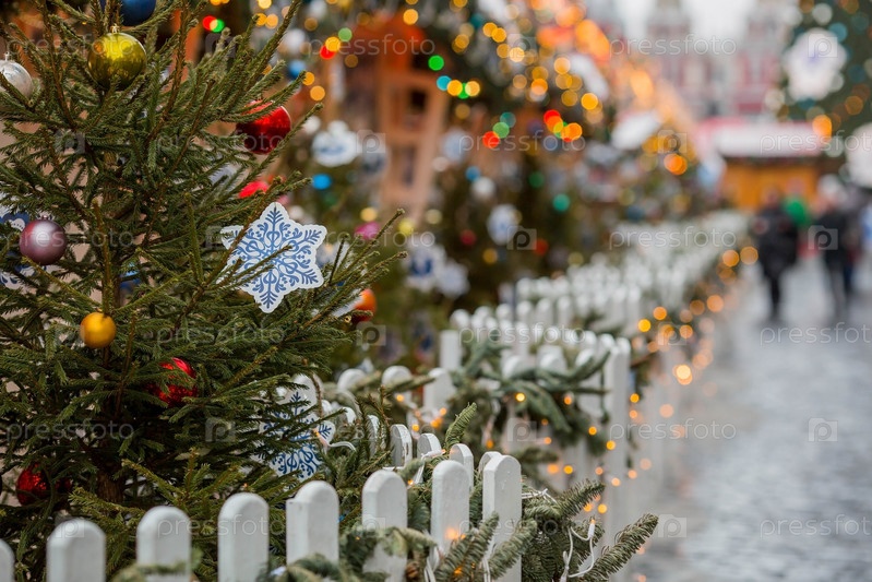 Рождественское украшение Красной площади. Красивые праздничные украшения в городе. Рождественские украшения улиц. Москва, Красная площадь, декабрь 2023 г