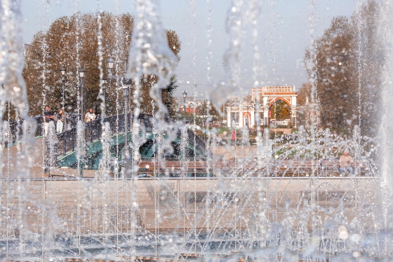 Светомузыкальный фонтан весенним утром. Природный музей-заповедник «Царицыно». Фонтан в парке Царицыно