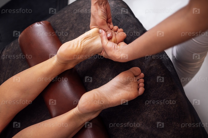 Крупным планом женская ступня получает нежный массаж