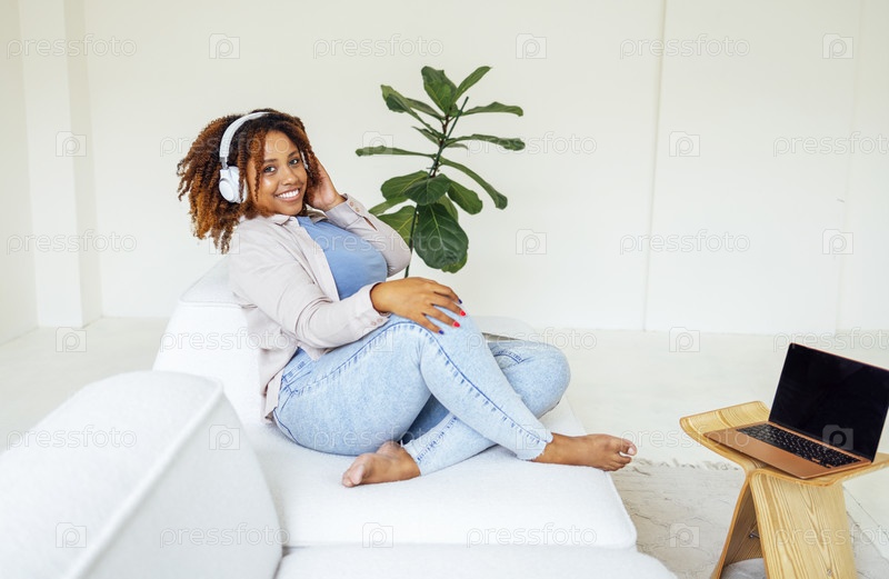 Молодая афроамериканка работает на ноутбуке