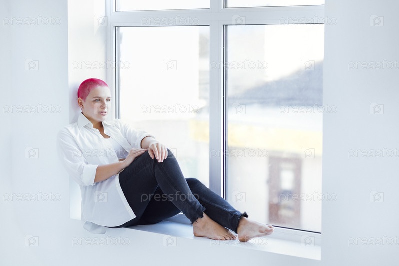 Красивая расслабленная женщина в легкой одежде и с рыжими волосами