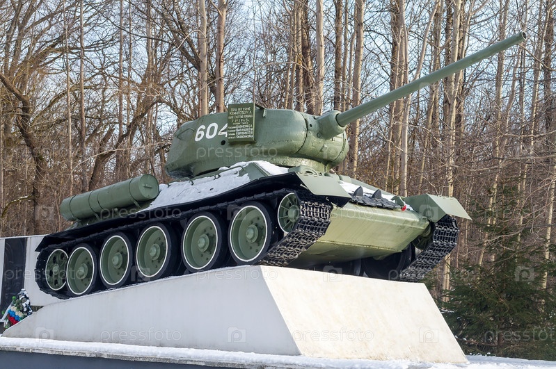 Военное кладбище. Мемориальный комплекс на братской могиле советских воинов. Танк на могиле солдат. Калининградская область