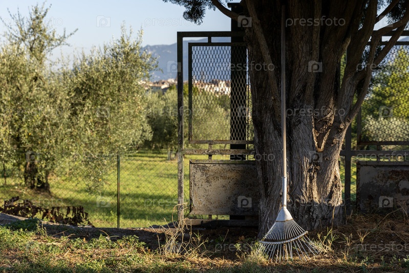 Италия. Терни. Грабли в саду в провинции Умбрия. Италия. Терни. A rake in a garden in the province of Umbria
