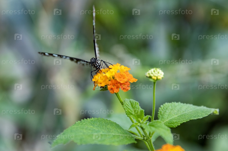Италия. терни. голубая бабочка монарх на цвете. италия. терни. синяя бабочка монарх на цвете
