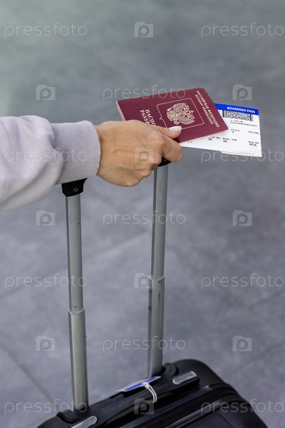 Россия. Санкт-Петербург. Пассажирка обладает российским паспортом и посадочным талоном. Россия. Санкт-Петербург. Пассажир имеет российский паспорт и посадный билет