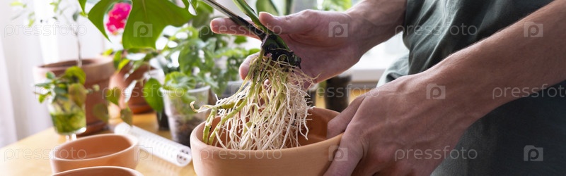 Баннерные руки держат Monstera deliciosa, швейцарские сыровые крыши