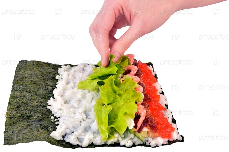 Девушка готовит суши. Готовить еду. Японская еда. Роллы - кулинария
