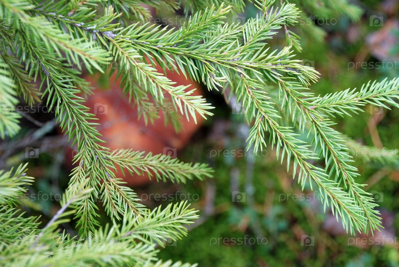 Белый гриб вырос возле упавшего ствола