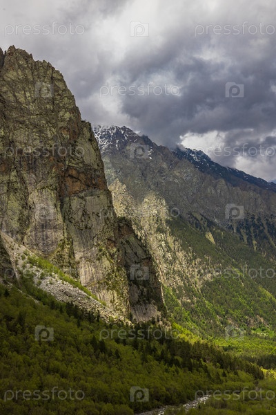 Красивый пейзаж с видом на горы. Красивый вид на горы на солнце на фоне неба