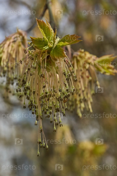 Цветение ясеньколистный кленовый, или американский клён (лат. Acer negundo), соцветия распускаются Весной