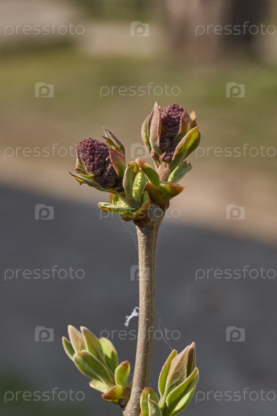 Цветочные почки сирены (лат. Syringa vulgaris) распускаются и возникают соцветия.Весна