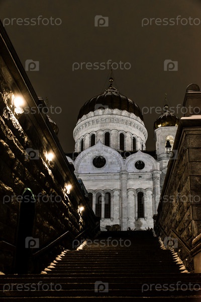 Лестница ведущая к Храму Христа Спасителя, ночной вид