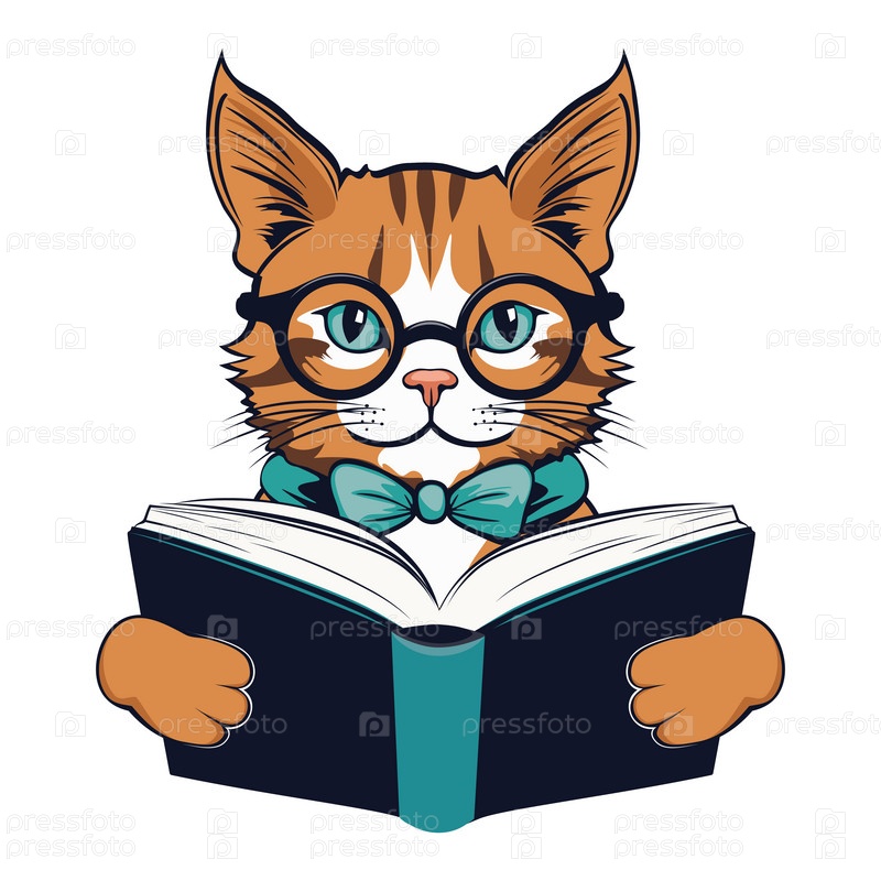 Рыжий кот Мейн-кун с книгой