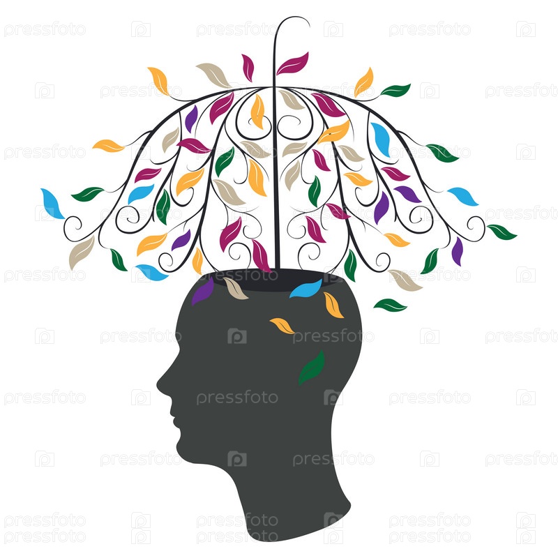 Осеннее дерево с листьями на голове