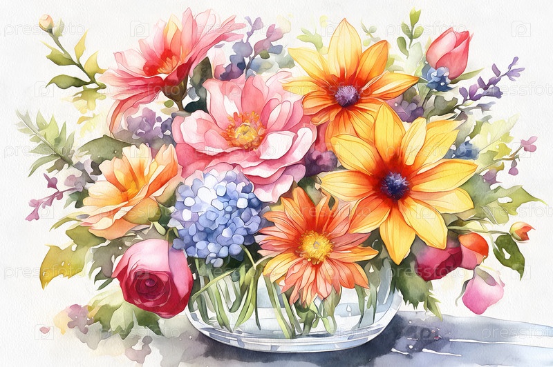 Акварельный букет цветов в вазе